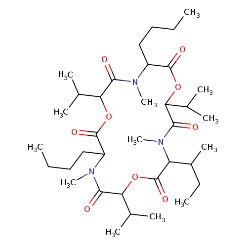 Matched synonyms: … (3S,6R,9S,12R,15S,18R)-3,9,15-Tri[(2S)-2-butanyl]-6,12,18-triisopropyl-4,10,16-trimethyl-1,7,13 ... Cyclo((2R)-2-hydroxy-3-methylbutanoyl-N-methyl-L-isoleucyl-(2R)-2-hydroxy-3-methylbutanoyl-N-methyl ... -L-isoleucyl-(2R)-2-hydroxy-3-methylbutanoyl-N-methyl-L-isoleucyl) …