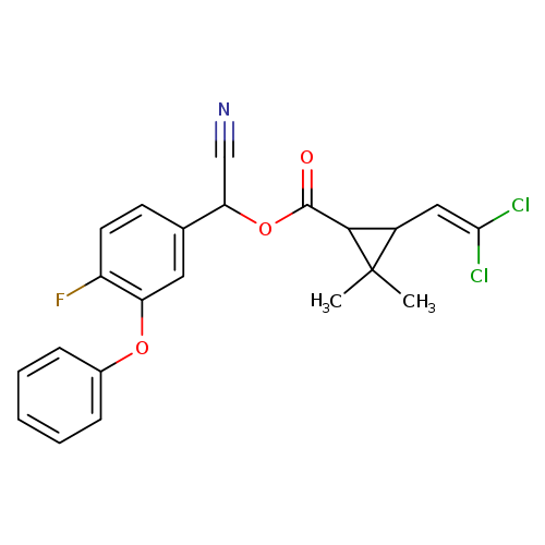 Matched synonyms: … (R,S)-alpha-Cyano-4-fluoro-3-phenoxybenzyl-(1R,S)-cis,trans-3-(2,2-dichlorovinyl)-2,2-dimethylcyclopropanecarboxylate ... (RS)-.alpha.-Cyano-4-fluoro-3-phenoxybenzyl (1RS,3RS ... (RS)-a-Cyano-4-fluoro-3-phenoxybenzyl (1RS,3RS …
