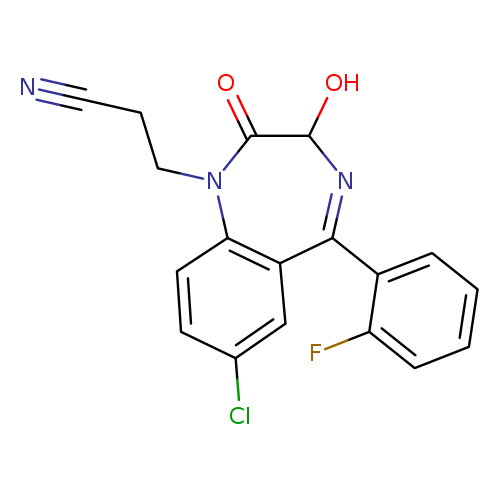 Matched synonyms: … 1-(2-Cyanoethyl)-7-chloro-3-hydroxy-5-(2'-fluorophenyl)-1,3-dihydro-2H-1,4-benzodiazepin-2-one …
