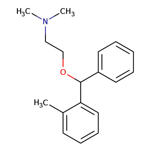 Matched synonyms: … 2-(phenyl-o-tolylmethoxy)ethyldimethylamine ... 2-methyldiphenhydramine ... beta-Dimethylaminoethyl 2-methylbenzhydryl ether …