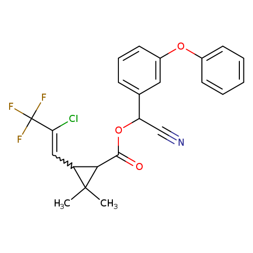 Matched synonyms: … 3-(2-Chloro-3,3,3-trifluoro-1-propenyl)-2,2-dimethylcyclopropanecarboxylic acid cyano(3-phenoxyphenyl)methyl ester …