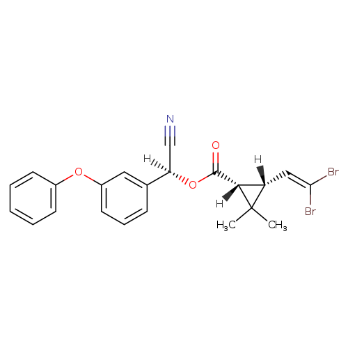 Matched synonyms: … (S)-cyano(3-phenoxyphenyl)methyl (1R,3R)-3-(2,2-dibromoethenyl)-2,2-dimethylcyclopropanecarboxylate …