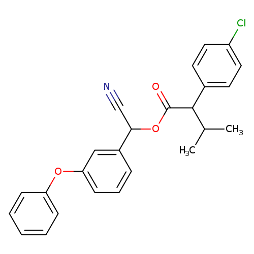 Matched synonyms: … a-Cyano-3-phenoxybenzyl 2-(4-chlorophenyl)-3-methylbutyrate ... alpha-Cyano-3-phenoxybenzyl 2-(4-chlorophenyl)isovalerate ... Cyano(3-phenoxyphenyl)methyl 4-chloro-a-(1-methylethyl)benzeneacetate, 9CI …
