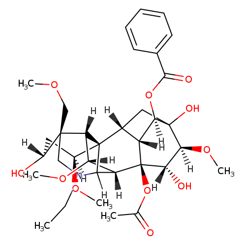 Matched synonyms: … (1‘±,3‘±,6‘±,14‘±,16beta)-8-(acetyloxy)-20-ethyl-3,13,15-trihydroxy-1,6,16-trimethoxy-4-(methoxymethyl)aconitan-14-yl benzoate …