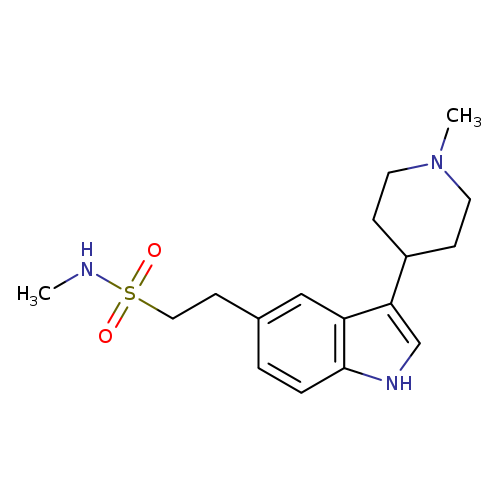 Matched synonyms: … N-Methyl-2-(3-(1-methylpiperiden-4-yl)indole-5-yl)ethanesulfonamide ... N-Methyl-2-[3-(1-methyl-4-piperidyl)-1H-indol-5-yl]-ethanesulfonamide …