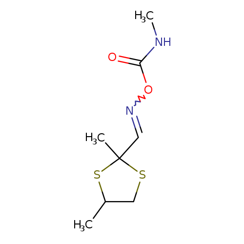 Matched description: … 2,4-Dimethyl-1,3-dithiolane-2-carboxaldehyde O-(methylcarbamoyl)oxime is a carbamate pesticide …
