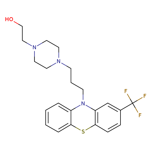 Matched synonyms: … 1-(2-Hydroxyethyl)-4-(3-(trifluoromethyl-10-phenothiazinyl)propyl)-piperazine ... 10-(3'-(4''-(beta-hydroxyethyl)-1''-piperazinyl)-propyl)-3-trifluoromethylphenothiazine ... 2-(4-(3-[2-(Trifluoromethyl)-10H-phenothiazin-10-yl]propyl)-1-piperazinyl)ethanol …